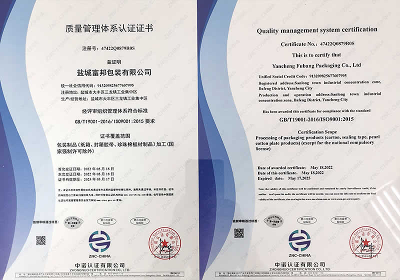 江鹽城富邦包裝有限公司創(chuàng)辦于2011年,地處環(huán)境優(yōu)美的鹽城大豐區(qū)三龍鎮(zhèn)工業(yè)集中區(qū),緊臨331省道和226省道,交通十分便利。是集研發(fā)、生產、經(jīng)營為一體的中型私營企業(yè),主要生產各種規(guī)格內、外銷中高檔瓦楞紙箱、彩色印刷、封箱膠帶、紙托盤、珍珠棉、EPS(泡沫)成型、免模、大板裁片的專業(yè)工廠,年產瓦楞紙箱達400萬平方米、封箱膠帶260萬平方米、EPS泡沫10萬立方米以上。工廠占地8000平方米,生產廠房近3000平方米,擁有進口1020秋山四色膠印機,生產工藝先進,檢測手段齊全,品質服務保證,本公司已通過ISO9001:2015國際質量體系認證,并嚴格持續(xù)遵照體系認證及商檢部門要求組織生產和經(jīng)驗管理。。。。。。